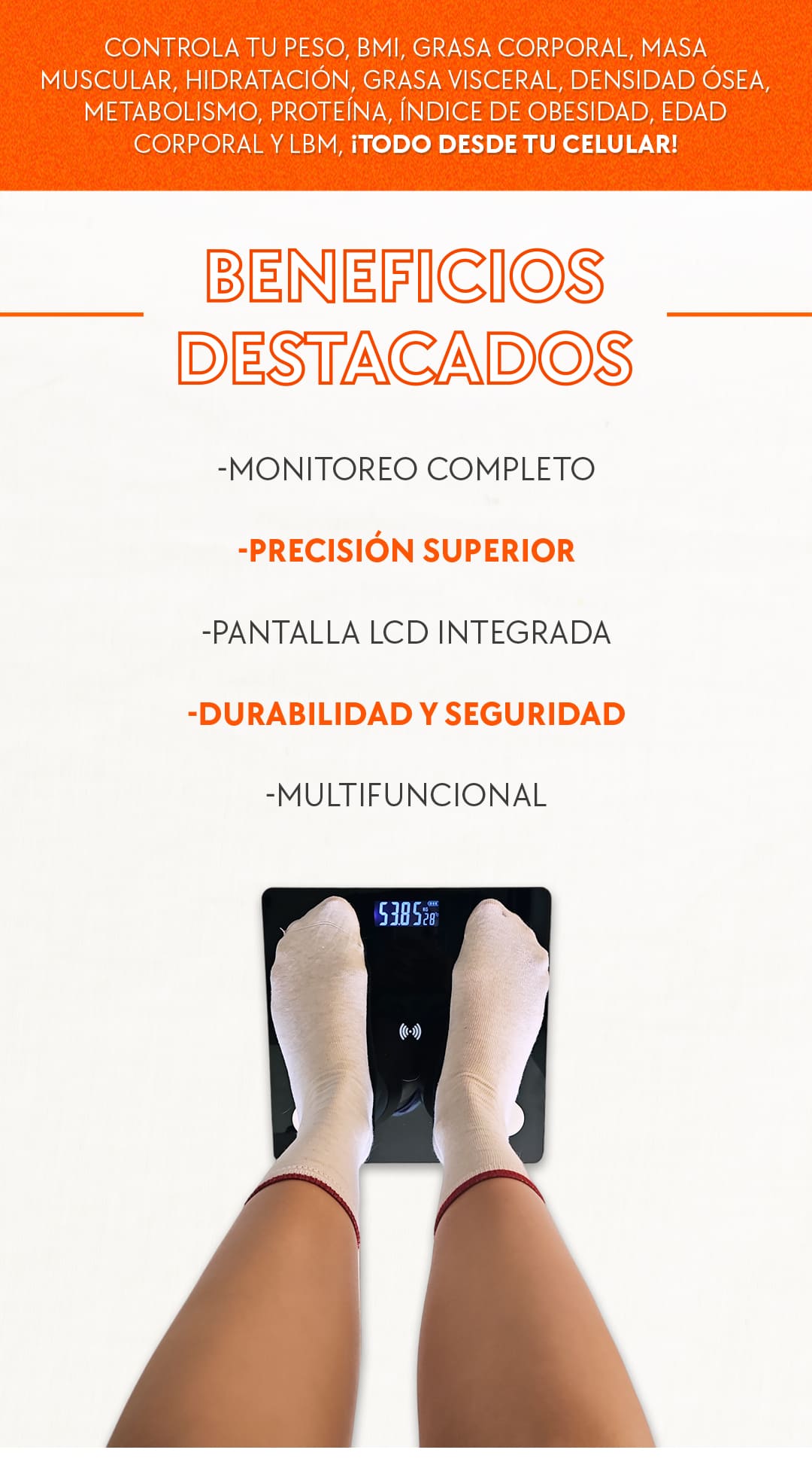 Nuestra báscula inteligente muestra la historia completa de tu cuerpo. Sabrás exactamente qué está cambiando y podrás controlar tu progreso con datos reales.